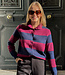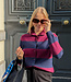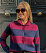 Gestreepte pull met opstaande kraag. De mix van donkerblauw en burgundy geeft je outfit een elegante, maar cosy look.