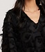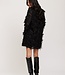 Elegante, zwarte jurk met speelse textuur en een luchtige fit. Een leuke variant op de 'little black dress' voor diegene die comfortabel willen zijn. De jurk is recht van pasvorm en is volledig gevoerd. De mouwen zijn wijd uitlopend en zijn subtiel doorschijnend voor een elegante touch.