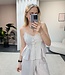 Gestreepte top die je als set kan dragen met de bijpassende broek. De top heeft verstelbare bandjes en loopt vanaf de taille wijder uit.