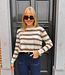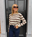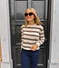 Dunnere pull met zachte stof en strependetail. Valt wat losser, maar niet te oversized. Kan je makkelijk stylen op een jeans voor een sportieve, casual look! En combineer het met een bijpassende Winnie gilet voor een extra warme & cosy look!