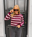 Dunnere pull met zachte stof en strependetail. Valt wat losser, maar niet te oversized. Kan je makkelijk stylen op een jeans voor een sportieve, casual look! En combineer het met een bijpassende Winnie gilet voor een extra warme & cosy look!