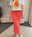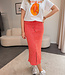 Deze speelse midi-rok van Saint Tropez is een echte eye-catcher in je zomerse garderobe. De koraalkleurige knit-stof geeft meteen een frisse, vrolijke look, terwijl de voering tot aan de split zorgt voor een comfortabel gevoel.
