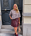 Hier combineerde ik de lederen look rok met de 'Luda zebra sweater' voor een volledige bordeaux outfit!