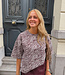 Zachte sweater met korte mouwen in trendy bordeaux zebra print. Kan je naarmate het frisser wordt ook leuk combineren met een kanten top onder of een coltruitje.