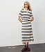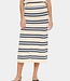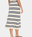 Zachte knit rok met strepen in verschillende blauwtinten. Draag hem classy met onze 'Saar gilet' in donkerblauw of casual met onze 'Sofia blouse' in het blauw. Perfect voor het tussenseizoen!