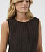 Donkerbruine gilet met blauwe streepjes. Is een getailleerd model. Afgewerkt met sierzakjes aan de voorkant en knopen. Style het casual op een lichtblauwe jeans of ga voor een beige geklede broek voor een classy look.