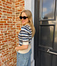 Gestreepte polo in een luchtige, heel zachte stof. De band aan de onderkant sluit iets meer aan en aan de borst zit de polo wat losser. De mouwtjes en knoopjes zijn wat klassieker afgewerkt. Een tijdloos item dat je heel casual kan dragen met een jeans of meer opgekleed met een pantalon.
