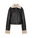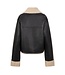 Leather look jas, gevoerd en afgewerkt met teddy stof. Je kan de mouwen omslaan of ze lang laten. Sluit met een rist en heeft steekzakken. Is rechtvallend van pasvorm en zit heerlijk cosy voor de koude dagen!