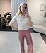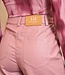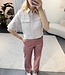 Een mauve pink straight leg broek met een leren look en subtiele stretch. Binnenkant heeft een zachte voering. Afgewerkt met grote steekzakken. Een statement broek die je eindeloos kan combineren in verschillende stijlen.